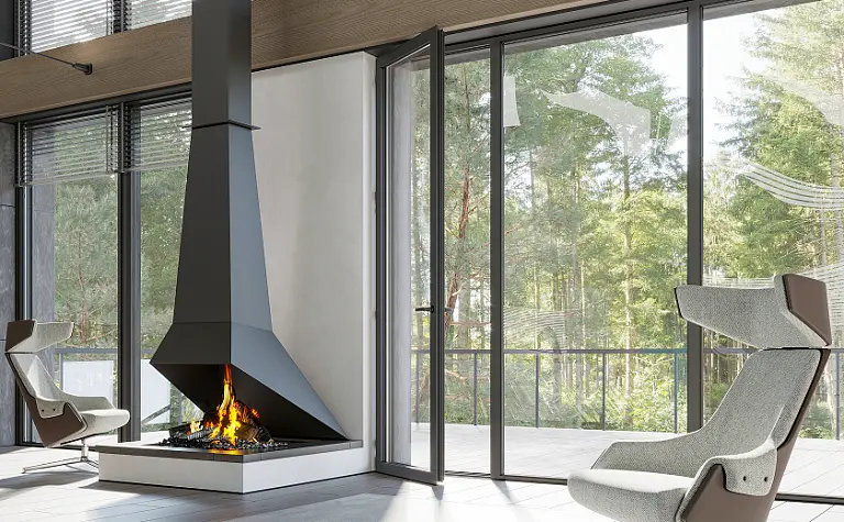 Решение для тех, кто не хочет загромождать свободное место на террасе. Дверь с открывание внутрь оставит максимум пространства для обустройства комфортной зоны отдыха.