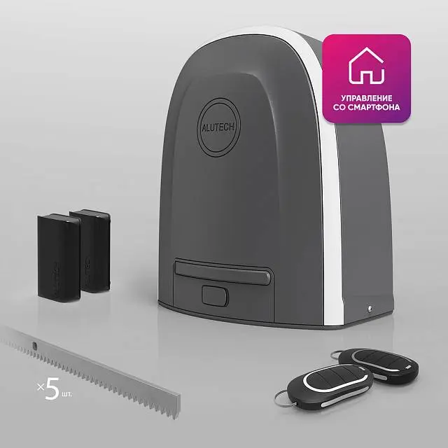 Умный привод для откатных ворот ALUTECH Roteo RTO-500MKIT-Sm + проводные фотоэлементы LM-L + сигнальная лампа SL-U + рейка ROA8 (5 шт.)
