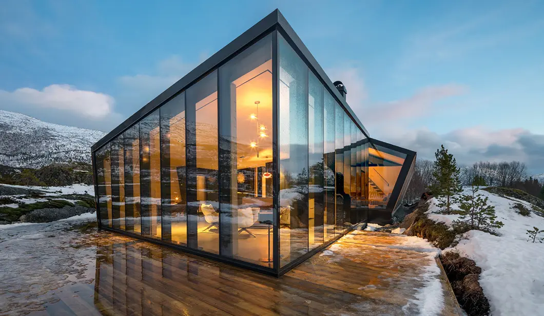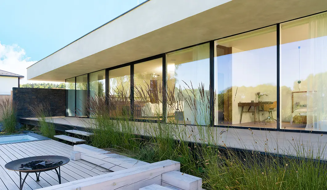 Безопасные для людей и окружающей среды панорамные окна для загородного дома. Остекление «АЛЮТЕХ» производится на современных заводах и проходит многоступенчатый контроль качества.