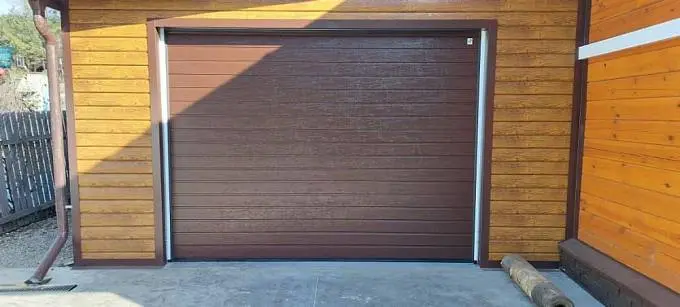 S-гофр, цвет темный дуб, с автоматическим управлением, торсионные пружины, с калиткой
