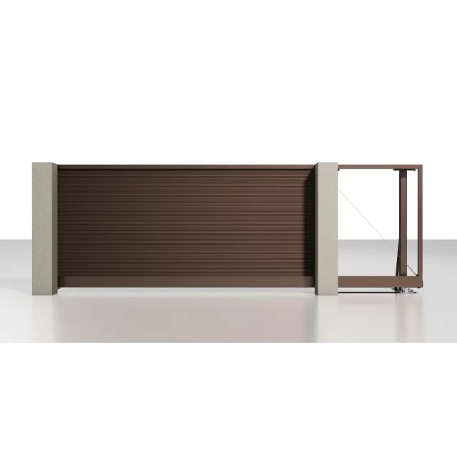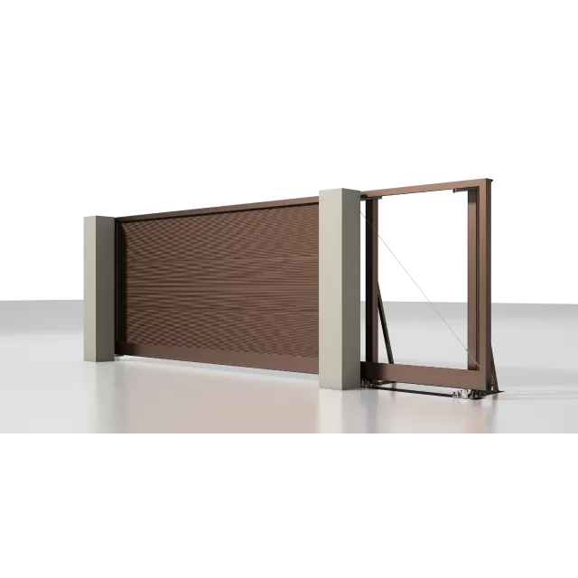 Совмещение направляющей шины с рамой в единый элемент увеличивает жёсткость конструкции и препятствует образованию перекосов. В направляющей шине предусмотрен «козырек» для фиксации зубчатой рейки и установки автоматики.